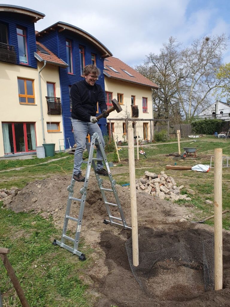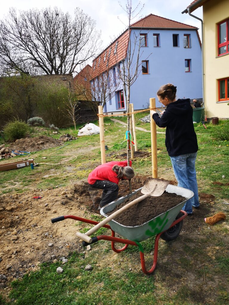 Es ist dabei gar nicht so leicht, Bäume zu finden, die mit der Klimakrise absehbar zurecht kommen werden. Wie tief wurzeln sie, kommen sie mit Trockenheit und hohen Temperaturen im Sommer, aber auch mit Frost im Winter zurecht. Gepflanzt haben wir am Ende eine Eiche, einen französischen Ahorn und eine Elsbeere. Drücken wir ihnen die Daumen.